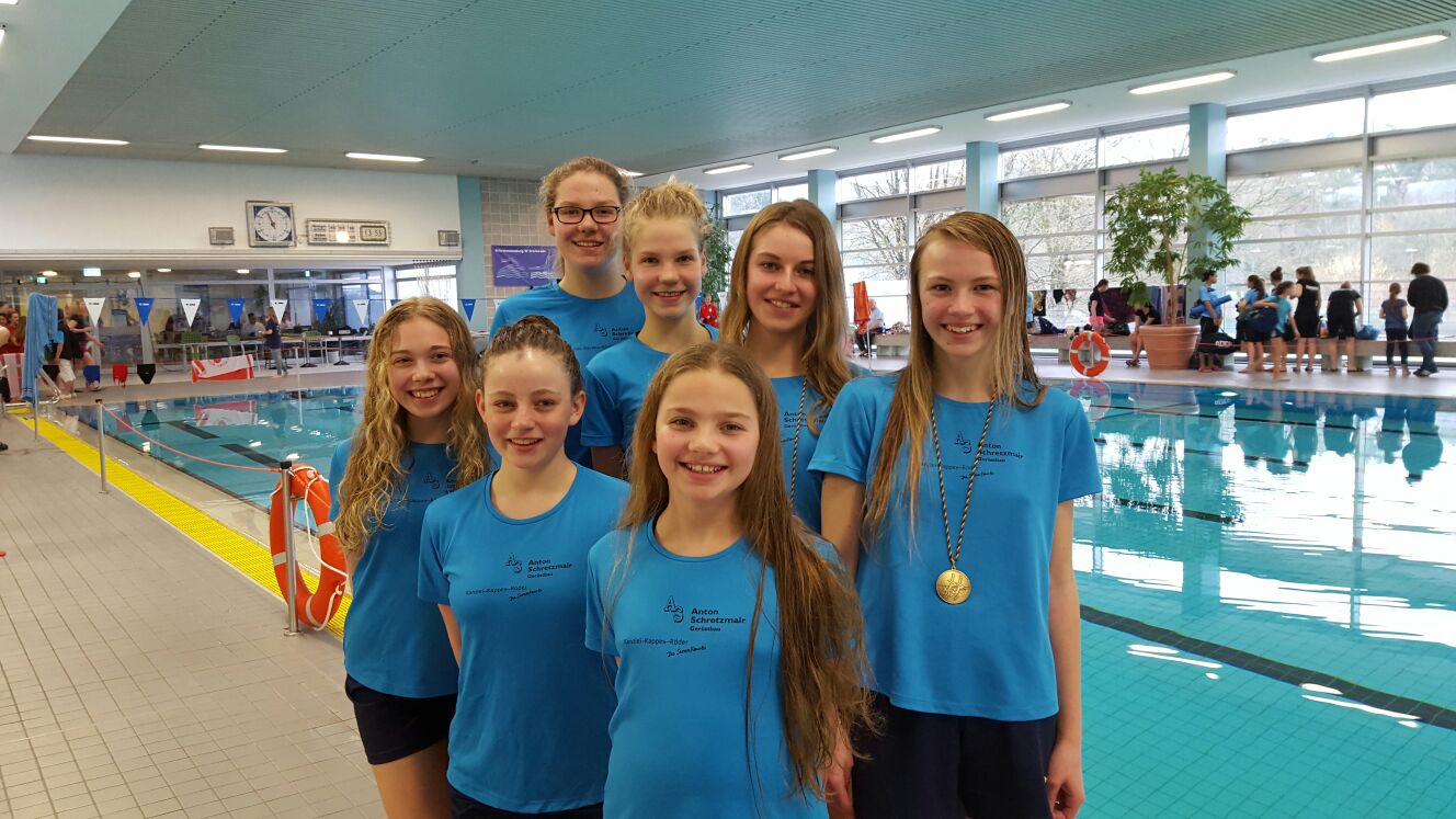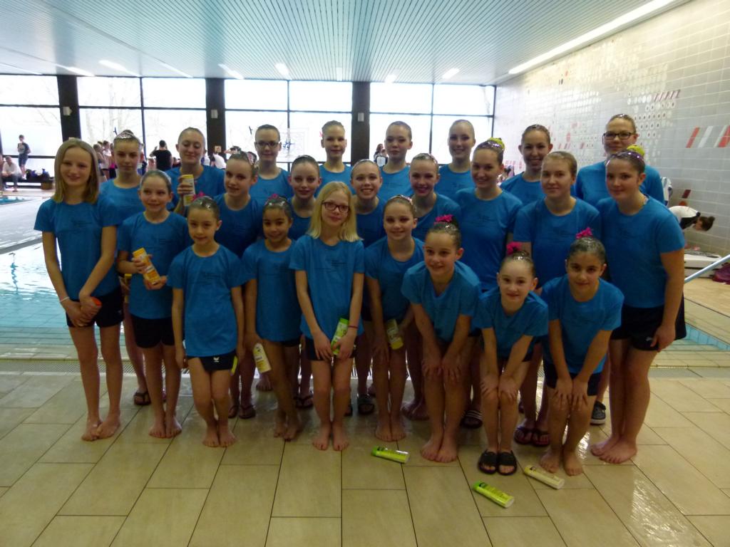 Der erste Gradmesser der Saison ist für die Synchronschwimmerinnen der nationale Pflichtvergleich, und der lief mehr als erfolgreich! Das Pflichtranglistentunier fand in diesem Jahr mit 135 Teilnehmerinnen aus ganz Deutschland am 13./14. Februar in Brackwede/Bielefeld statt. Sieben hochmotivierte Nixen gingen für den SB Delphin an den Start: Anika Schmid (Jg. 2000), Marie Schweigard, Ysanne Schürstedt (beide Jg. 2002), Teresa Grüner, Christina Schmid, Julia Schittko und Jamina Cestonaro (alle Jg. 2003).