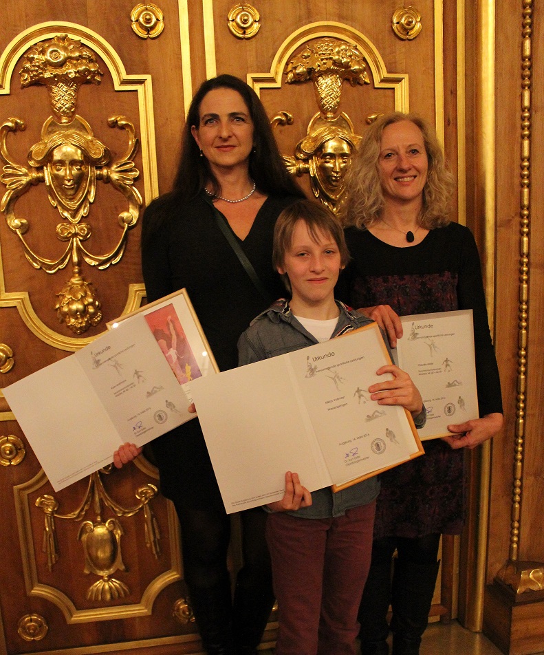 die Delphine Niklas Vollmayr (Springen) sowie Claudia Maier und Karin Mattmann (Synchronschwimmen) wurden von der Stadt Augsburg für Ihre herausragenden sportlichen Leistungen im Jahr 2015 geehrt. Bei der Verleihung im Goldenen Saal des Rathauses nahmen alle drei die Urkunde von Oberbürgermeister Kurt Gribl entgegen.