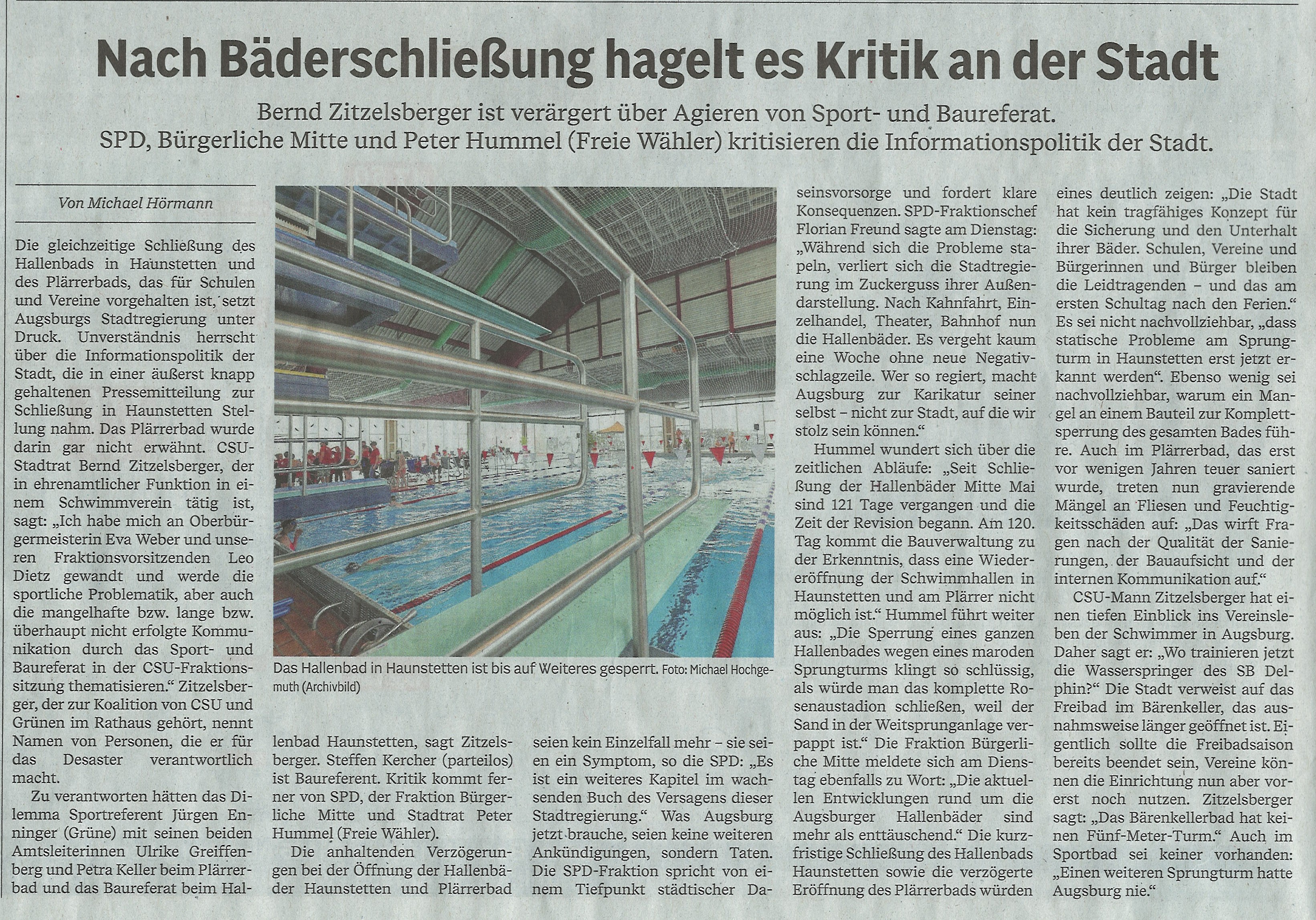 AZ - 17.09.2025 - Nach Bäderschließung hagelt es Kritik an der Stadt