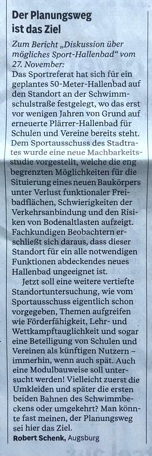 AZ - 10.12.2025 - Der Planungsweg ist das Ziel (Leserbrief Robert Schenk)
